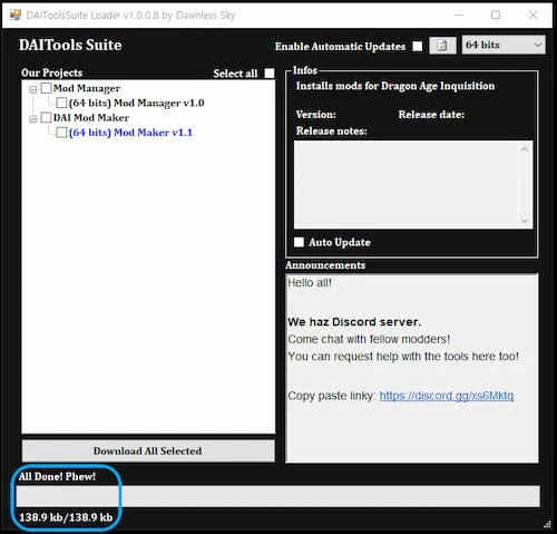 필요시 DAI Mod Maker도 다운로드합니다.