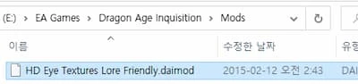 예로 드래곤 에이지 인퀴지션 모드 | HD 눈동자 텍스처 모드를 적용하겠습니다.