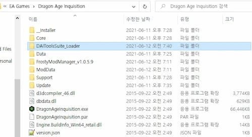 예로 [드래곤 에이지 인퀴지션 설치 경로] 아래에 "DAIToolsSuite_Loader" 폴더를 만들었습니다.