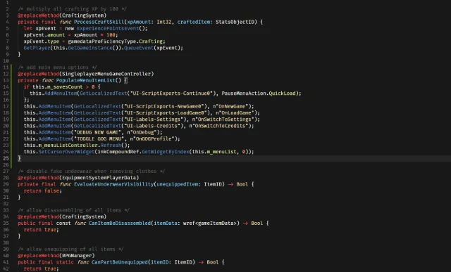 이 모드는 게임과 통합되어 게임 스크립트를 추가하거나 대체하는 데 사용할 수 있는 스크립트 컴파일러입니다.