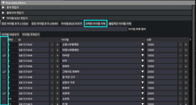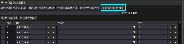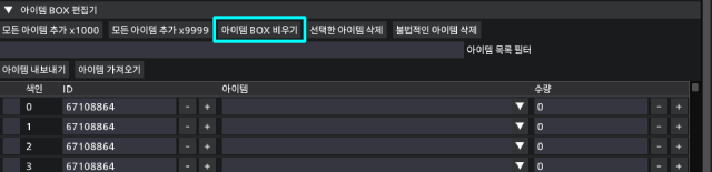2. 아이템 BOX에서 모든 아이템을 삭제합니다.