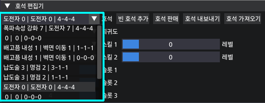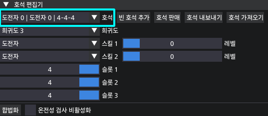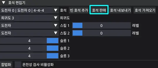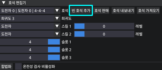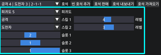 - 호석 에디터(희귀도, 스킬, 스킬 레벨, 슬롯)