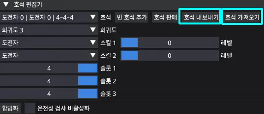 4. 장비 BOX의 모든 호석들을 json 파일로 내보내고 가져옵니다.