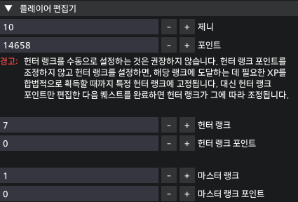 이 모드는 세이브 파일 에디터가 아닌, 메모리 내의 데이터 편집기입니다.