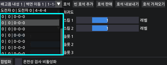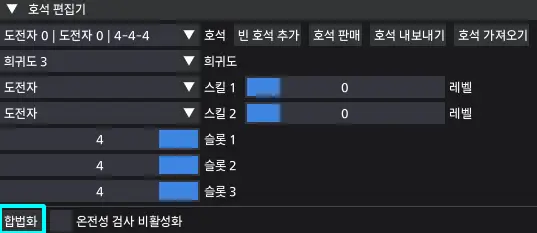 5. 장비 BOX의 호석 옵션이 정상적인지 "합법화" 버튼으로 점검할 수 있습니다.