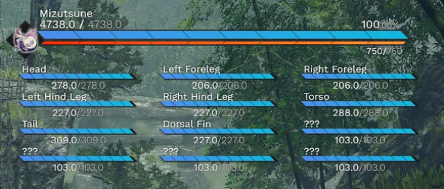 참고: 괴물의 상태 이상과 파츠를 보려면, 게임 내 목표 시스템을 사용하여 괴물을 목표로 삼아야 합니다.
