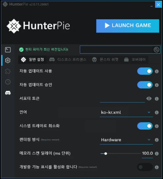 이것은 아직 개발 중인 프로젝트이고, 많은 기능이 계획되어 있으며, 목표는 HunterPie v2를 이전 버전만큼 강력하게 만드는 것입니다.