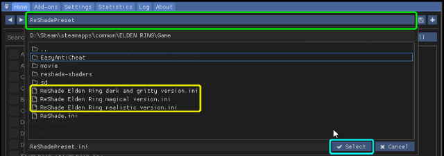 [엘든 링 설치 경로]/Game/ReShade Elden Ring realistic version.ini