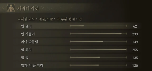 몸 관련 프리셋도 따로 제공되지 않았습니다.
