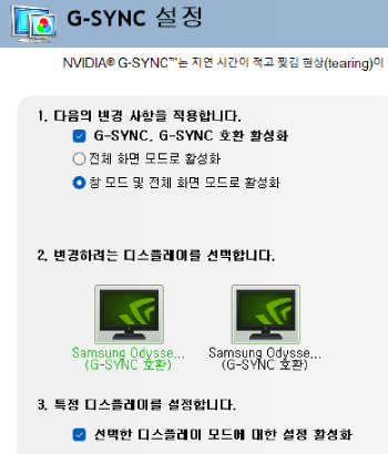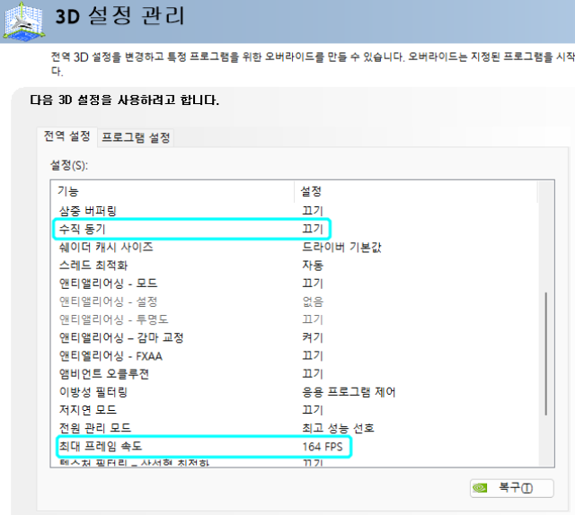 - 프리싱크 & G싱크를 지원하지 않는 모니터 : 수직 동기 켜기