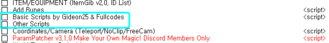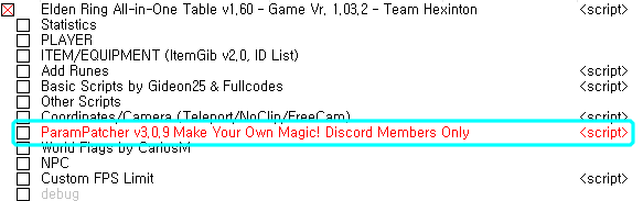 ParamPatcher V3 Scripts 항목에서 저장된 스크립트를 확인할 수 있습니다.