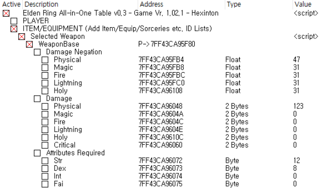ITEM/EQUIPMENT (Add Item/Equip/Sorceries etc. ID Lists) -> Selected Weapon 이동합니다.