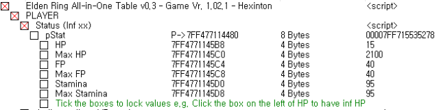 2. 치트 엔진을 실행하고, 치트 테이블을 불러옵니다.