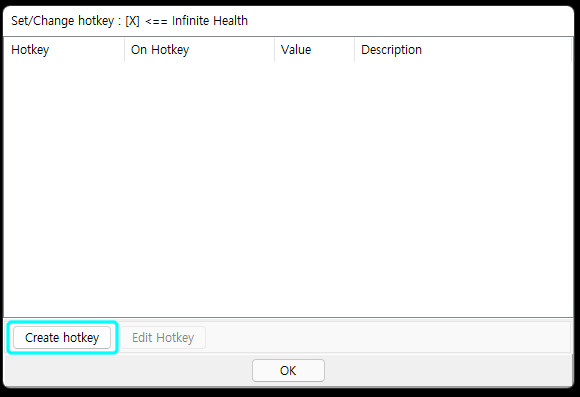 4. 아래 칸에 원하는 키를 입력하고 "OK"를 클릭합니다.