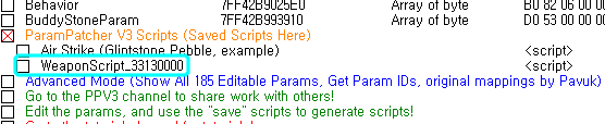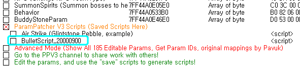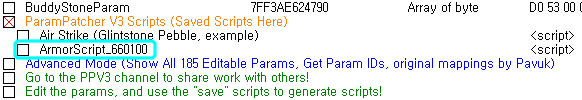 ParamPatcher V3 Scripts 항목에서 저장된 스크립트를 확인할 수 있습니다.