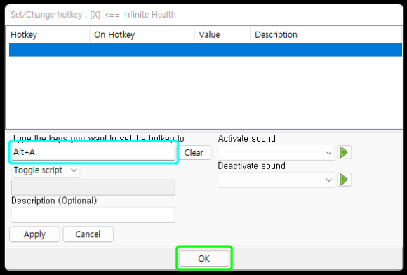 5. 게임 실행 시, 해당 단축키로 스크립트를 활성화/비활성화합니다.
