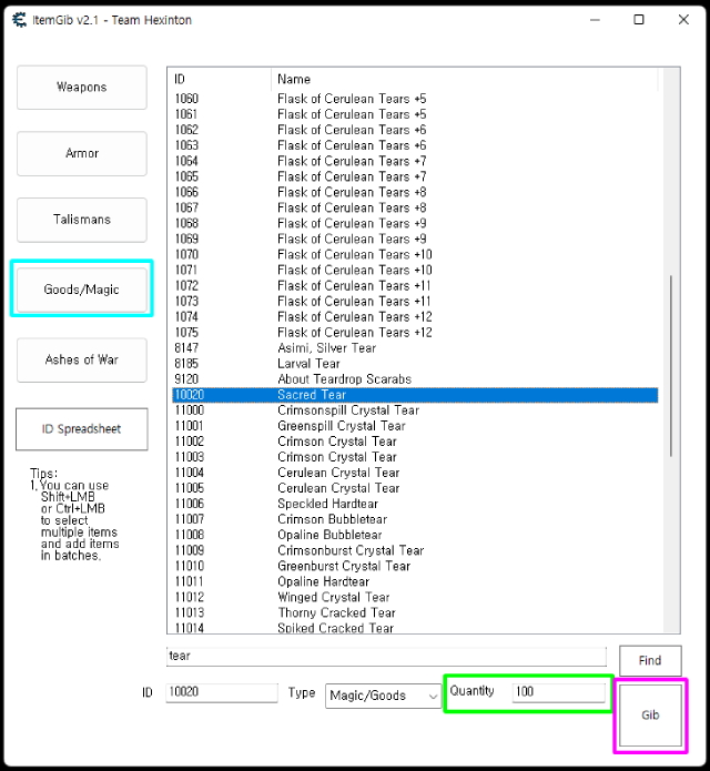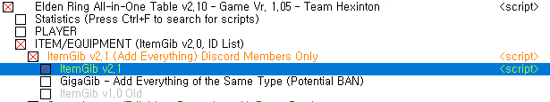1. ITEM/EQUIPMENT (Add Item/Equip/Sorceries etc. ID Lists) -> ItemGrib으로 이동합니다.