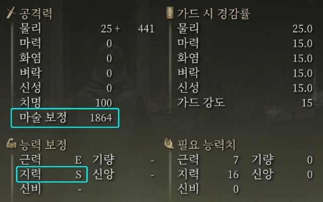 마술 보정 1864, 지력 S로 변경되었습니다.