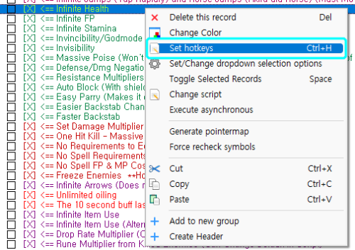 - 무한 HP/FP/스탯/점프/아이템/화살/장비 장전/제조/제작 재료