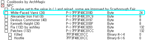 백면 바레만 죽은 상태이기 때문에 다른 NPC들은 모두 Value값과 괄호 안의 값과 동일한 것을 확인할 수 있습니다.