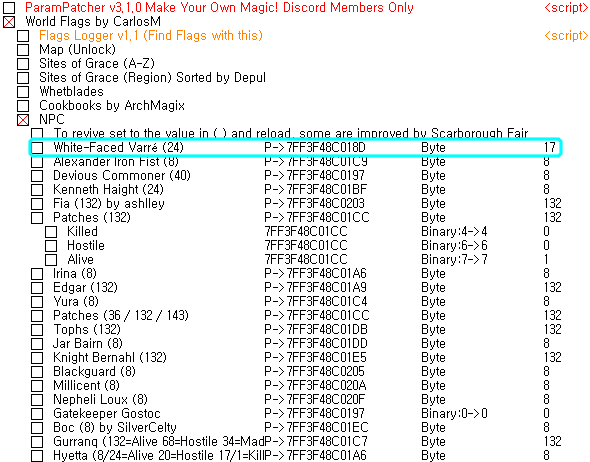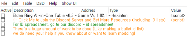 주의: 이 항목을 체크하고 디스코드 채널에 참가합니다. 이 치트 테이블을 온전히 사용하기 위해선, 이 모더의 디스코드 채널에 참가해야 합니다. 또한 웹 상이 아닌 디스코드 exe 프로그램을 pc에 설치해야 합니다.