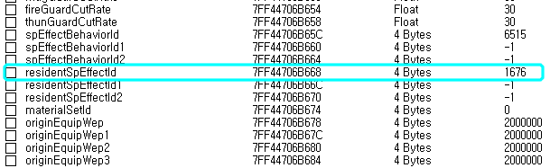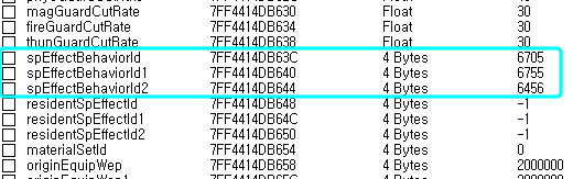 5. 강인도 값을 변경하기 위해 "vagrantItemEneDropItemLotId" 값을 설정합니다.