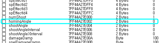 키 포인트는 "homingAngle" 값을 높은 값으로 변경하는 것입니다.