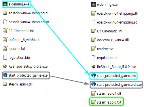 "start_protected_game.exe" 파일이 "eldenring.exe" 파일로 대체되어 있었다면, 원래의 "start_protected_game.exe" 파일로 되돌립니다.