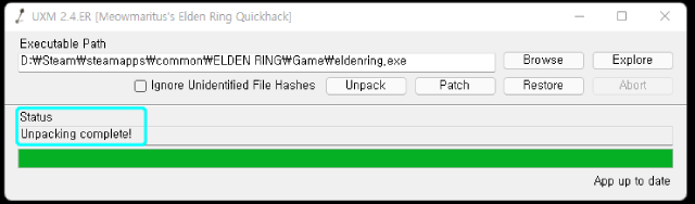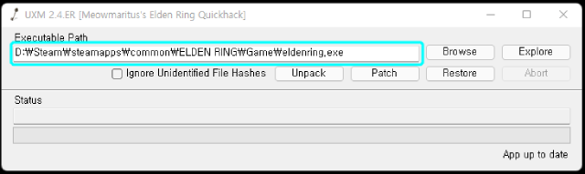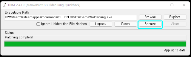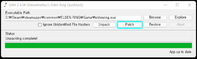 5. eldenring.exe 파일을 UXM으로 Patch 합니다.