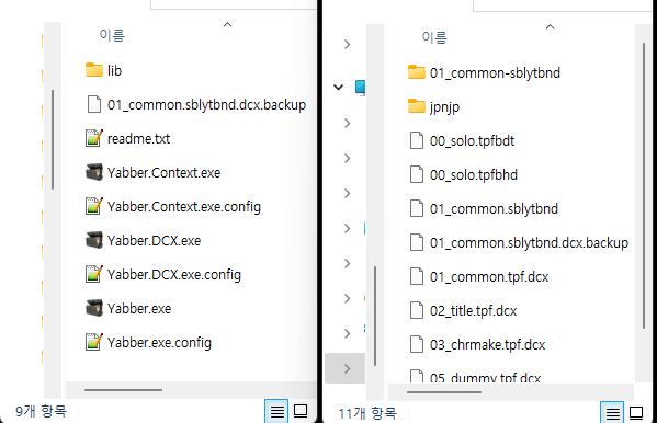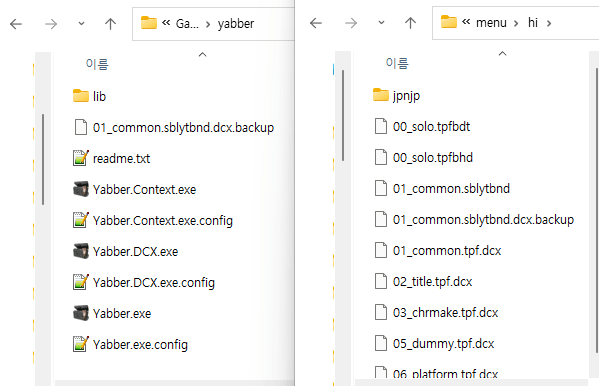 4-2. 01_common.sblytbnd 파일을 드래그 앤 드롭으로 Yabber.exe 파일 위에 놓습니다.