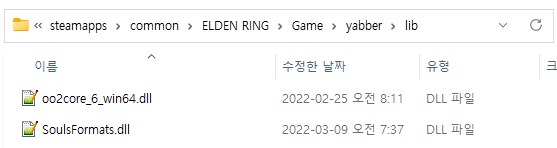 yabber 툴이 정상적으로 동작하려면 엘든 링의 oo2core_6_win64.dll 파일이 필요합니다.