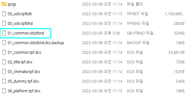 압축 해제하면 "01_common.sblytbnd" 파일을 확인할 수 있습니다.