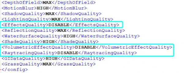 FPS Boost, Low LOD, Low Grass Range, No Grass, No Shadows, No Volumetric Effect, Invisible Enemies Fix, FP Regen.