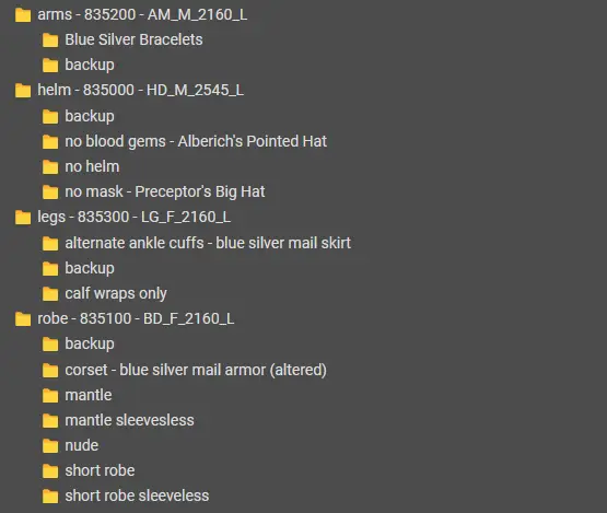 각 부위별로 dcx 파일을 하나만 사용합니다.