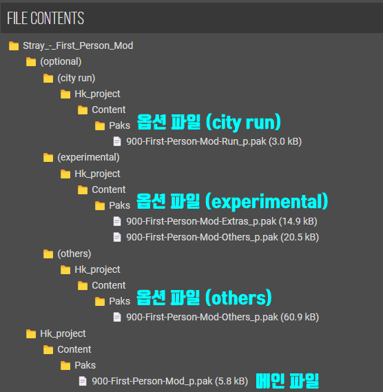 [스트레이 설치 경로]\Hk_project\Content\Paks\900-First-Person-Mod-Run_p.pak
