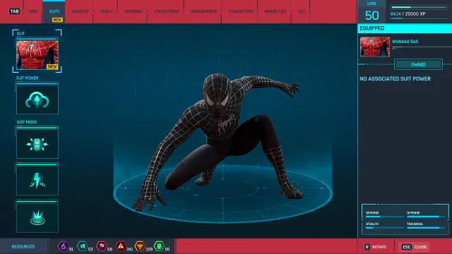 1. 게임을 실행하고, "웹 슈트"를 장착합니다.
