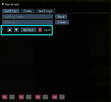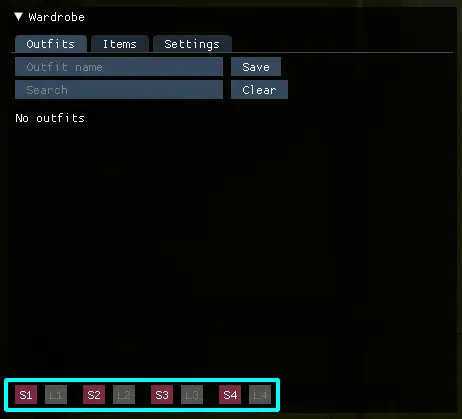 - Load quick access outfit: 단축키에 저장된 의상을 불러옵니다. SAVE 의상과는 별개입니다.