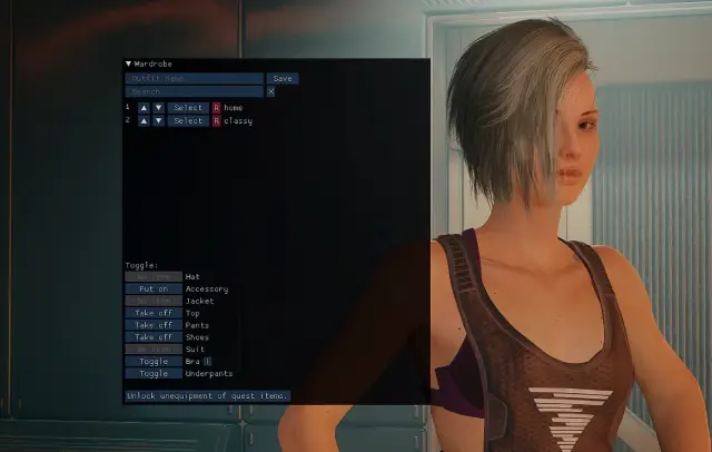 이 모드는 플레이어의 의상을 관리하는 간단한 메뉴를 제공합니다.