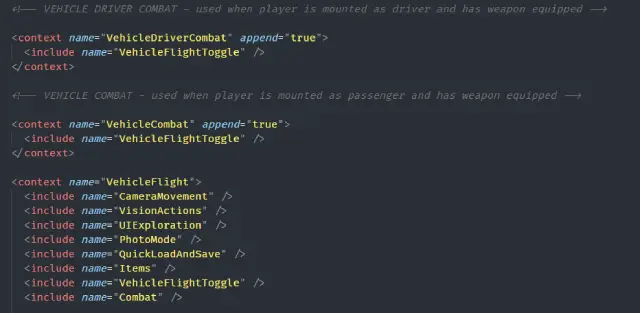 구성 파일은 engine/config/platform/pc/input_loader.ini에 작성되어, 게임에 병합된 .xml 파일을 로드하도록 지시합니다.