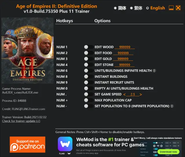 Age of Empires II: Definitive Edition Trainer - FLiNG Trainer - PC Game Cheats and Mods