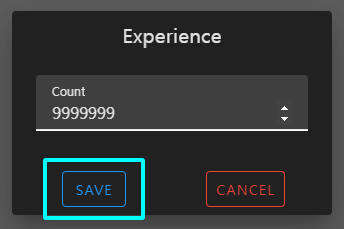 예를 들어, 경험치 변경은 Player Data 클릭 -> Experience의 연필 아이콘 클릭 -> 값 변경 후 SAVE 버튼 클릭