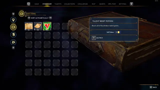 마법약은 레시피를 구입한 후 마법약 스테이션에서 제작할 수 있으며, 현재 마법약에는 적절한 아이콘이 없으므로 인벤토리에 빨간색 느낌표로 표시됩니다. 제작이 완료되면 미션 아이템 인벤토리 페이지에 표시됩니다. 도구 모음에 슬롯을 더 추가할 수 없기 때문에 현재로서는 이곳이 가장 좋은 장소였습니다.
