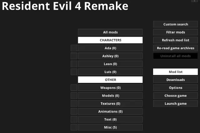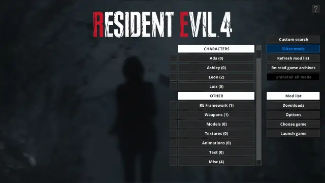 3. 모드 매니저를 한 번 실행하고 "Choose game"에서 바이오 하자드 4 리메이크(Resident Evil 4 Remake)를 게임으로 선택합니다.