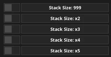 Max Stack Sizes- 999 or Multipliers- x2-5