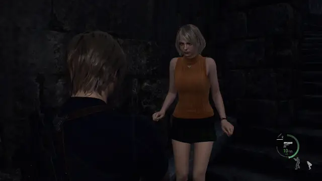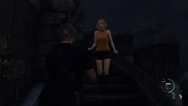 애슐리는 스타킹을 입지 않고 오리지널 게임에서처럼 다리를 드러낸 채로 게임 내내 깨끗한 상태를 유지합니다.