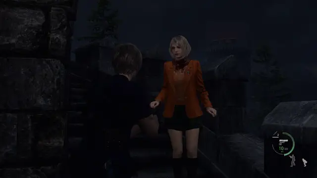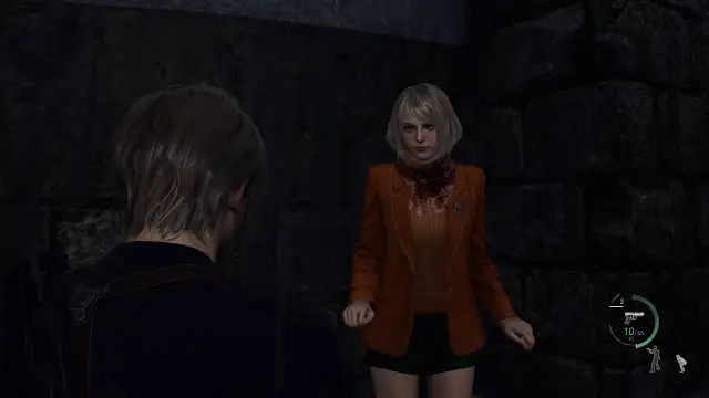 애슐리는 스타킹을 입지 않고 오리지널 게임에서처럼 다리를 드러낸 채로 게임 내내 깨끗한 상태를 유지합니다.
