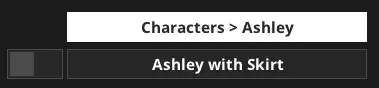 3. Characters > Ashley > Ashley with Skirt 버튼을 클릭하여, 모드를 활성화합니다.