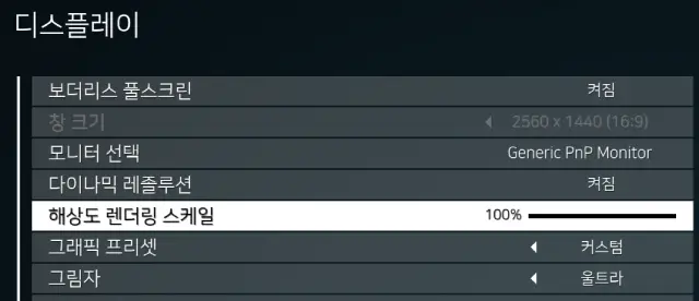 4. 이제 더 이상 품질 레벨이 없으며, 게임 설정에서 렌더 스케일링 비율을 변경하면 됩니다.