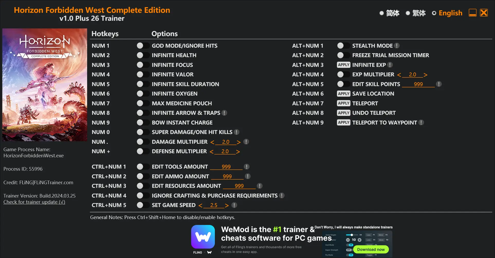 Horizon Forbidden West Complete Edition Trainer - FLiNG Trainer - PC Game Cheats and Mods