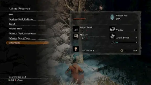Changes Sculptor's Idol menu to do prosthetic/gourd upgrades and enable/disable Kuro's Charm and Bell Demon at any time